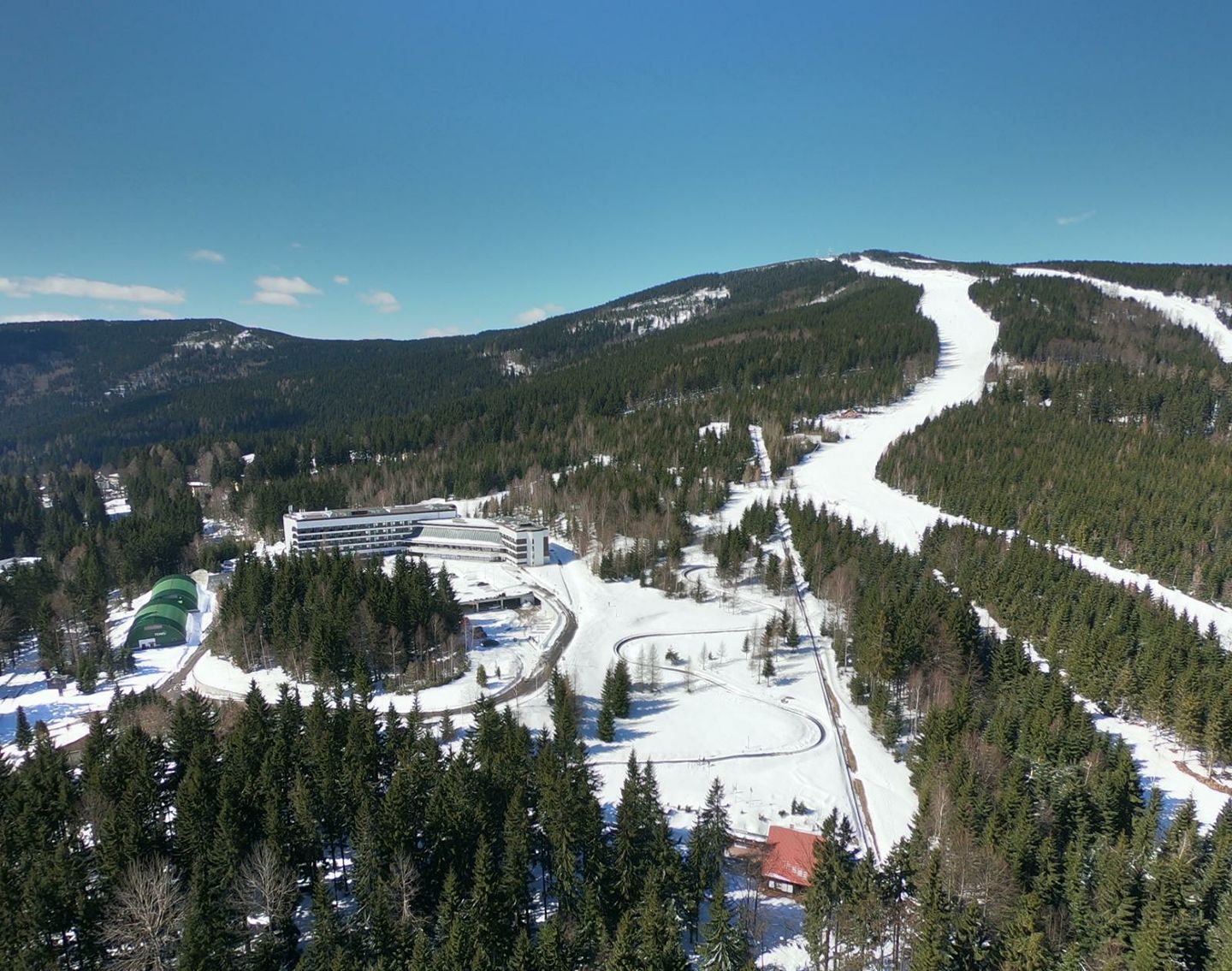 Špindlerův Mlýn, centrum Krkonoš, se loučí se zimní sezónou v plné parádě.